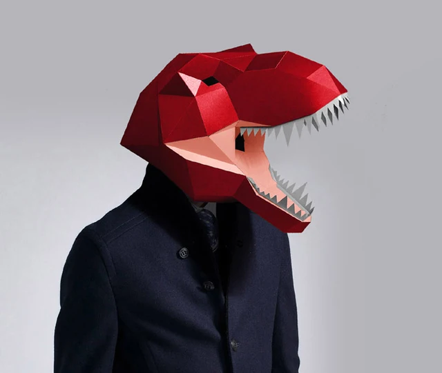 Pre Cut Paper Mask 3d Dinosaur Tyrannosaurus Rex Halloween Costume Cosplay Diy Paper Craft Model Mask Christmas Aliexpress Toys Hobbies